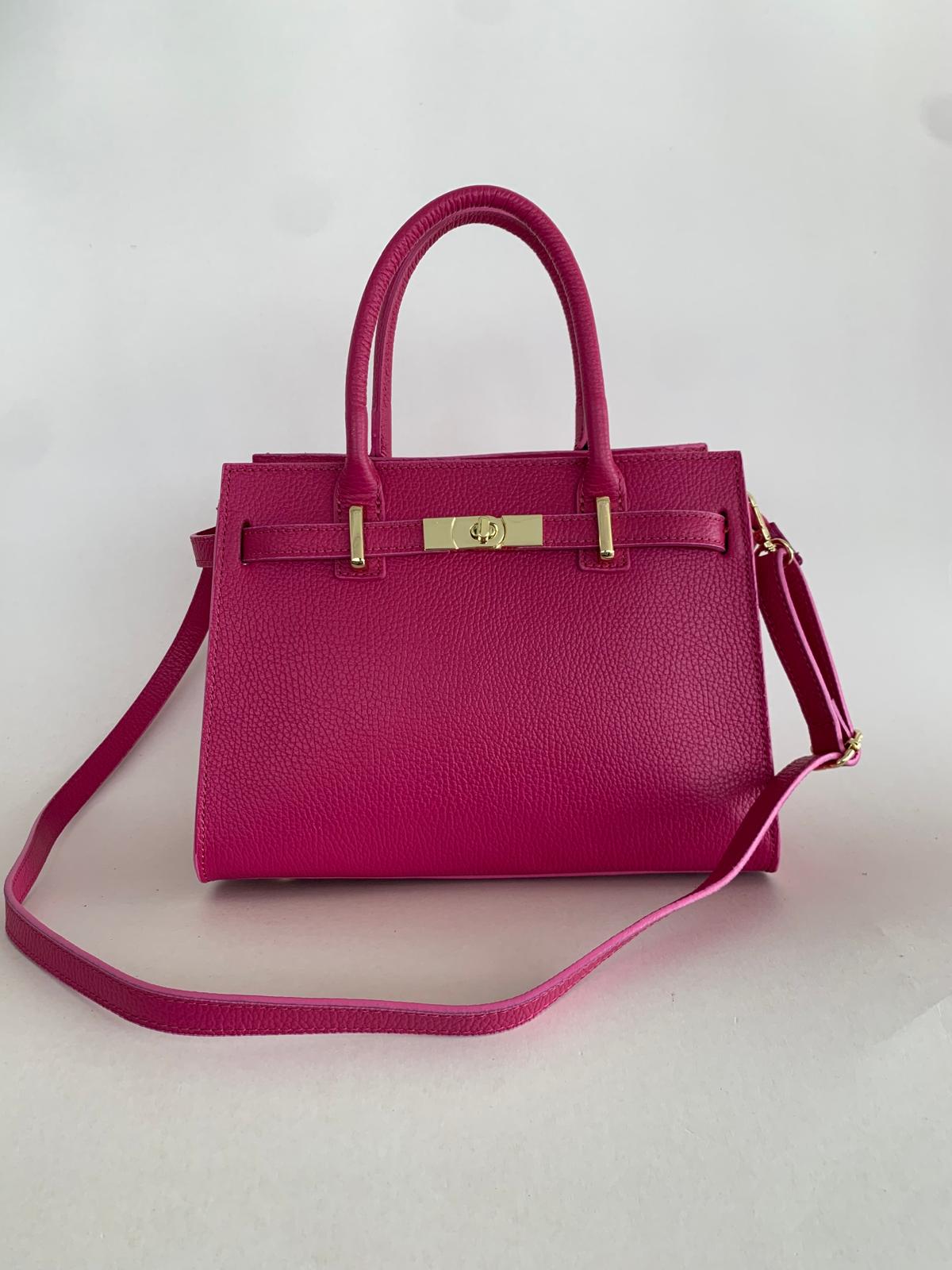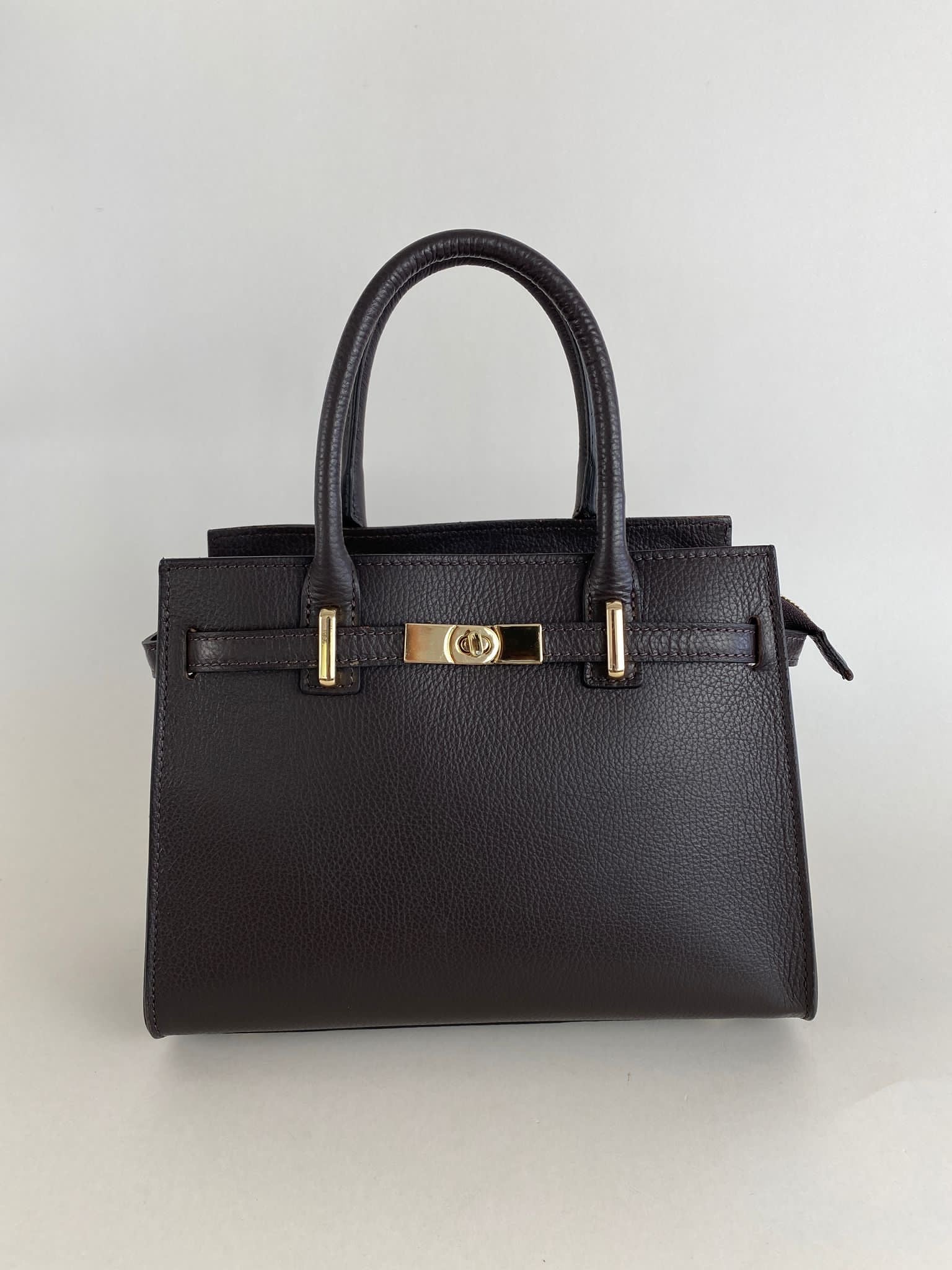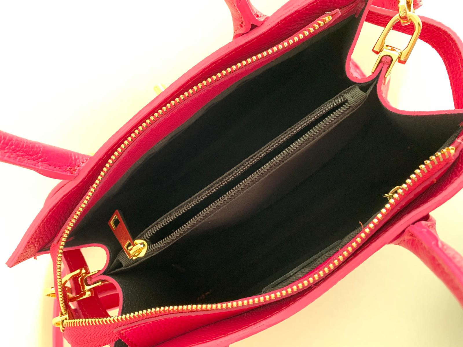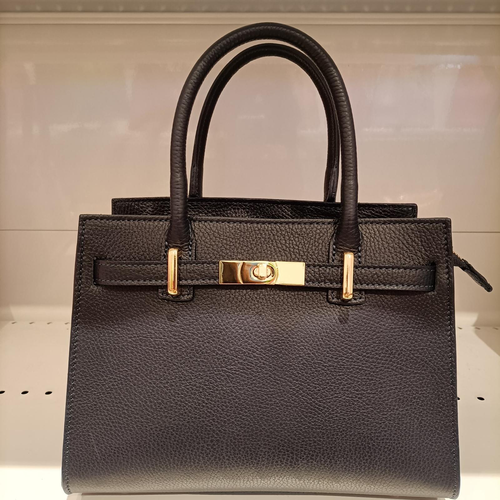 Borsa a mano realizzata in pelle di vitello botalato , chiusura a cerniera, interno foderato in tessuto, tasca interna con cerniera, interno diviso in due scomparti , metallerie dorate, tracolla in pelle removibile e regolabile