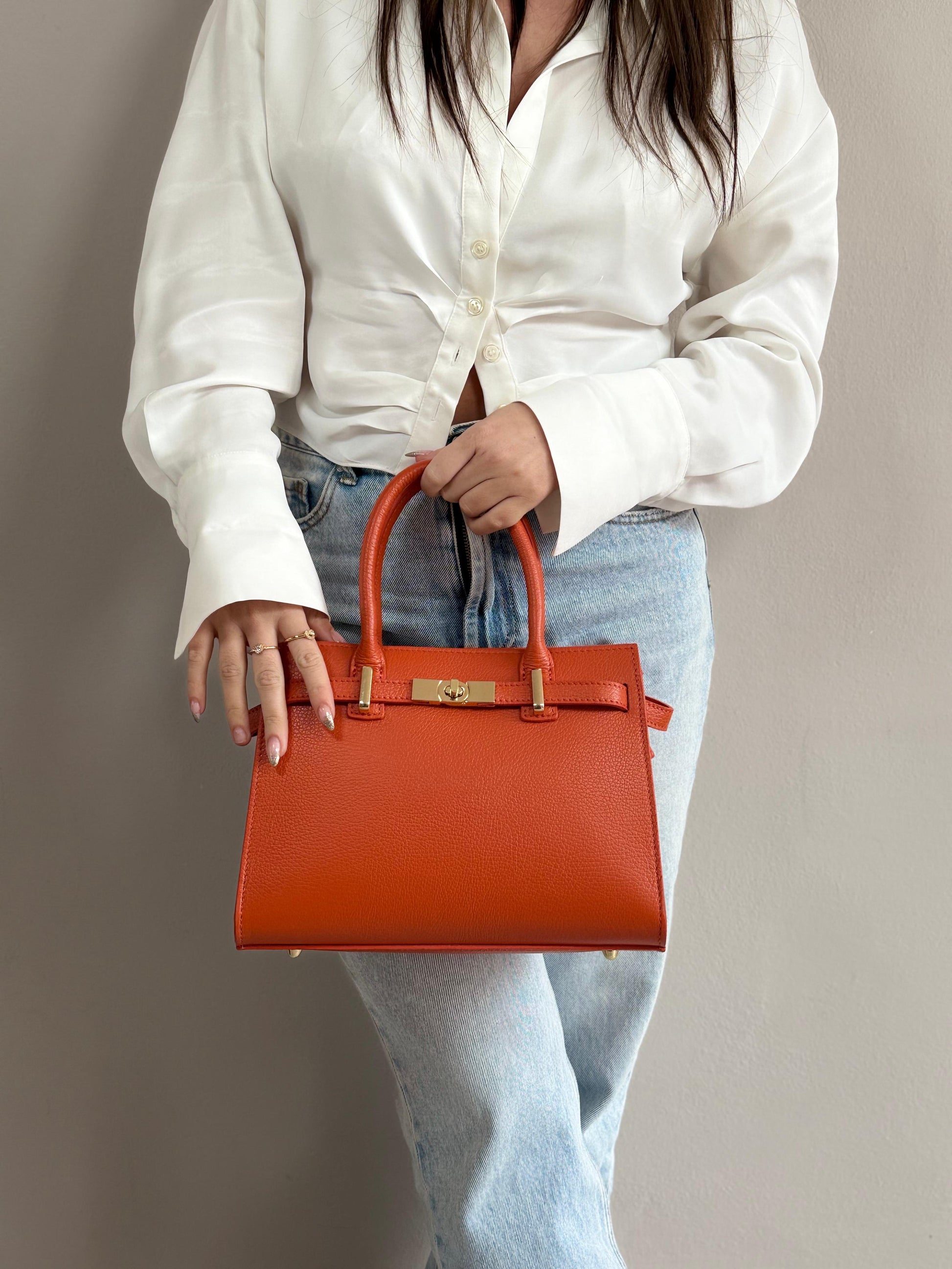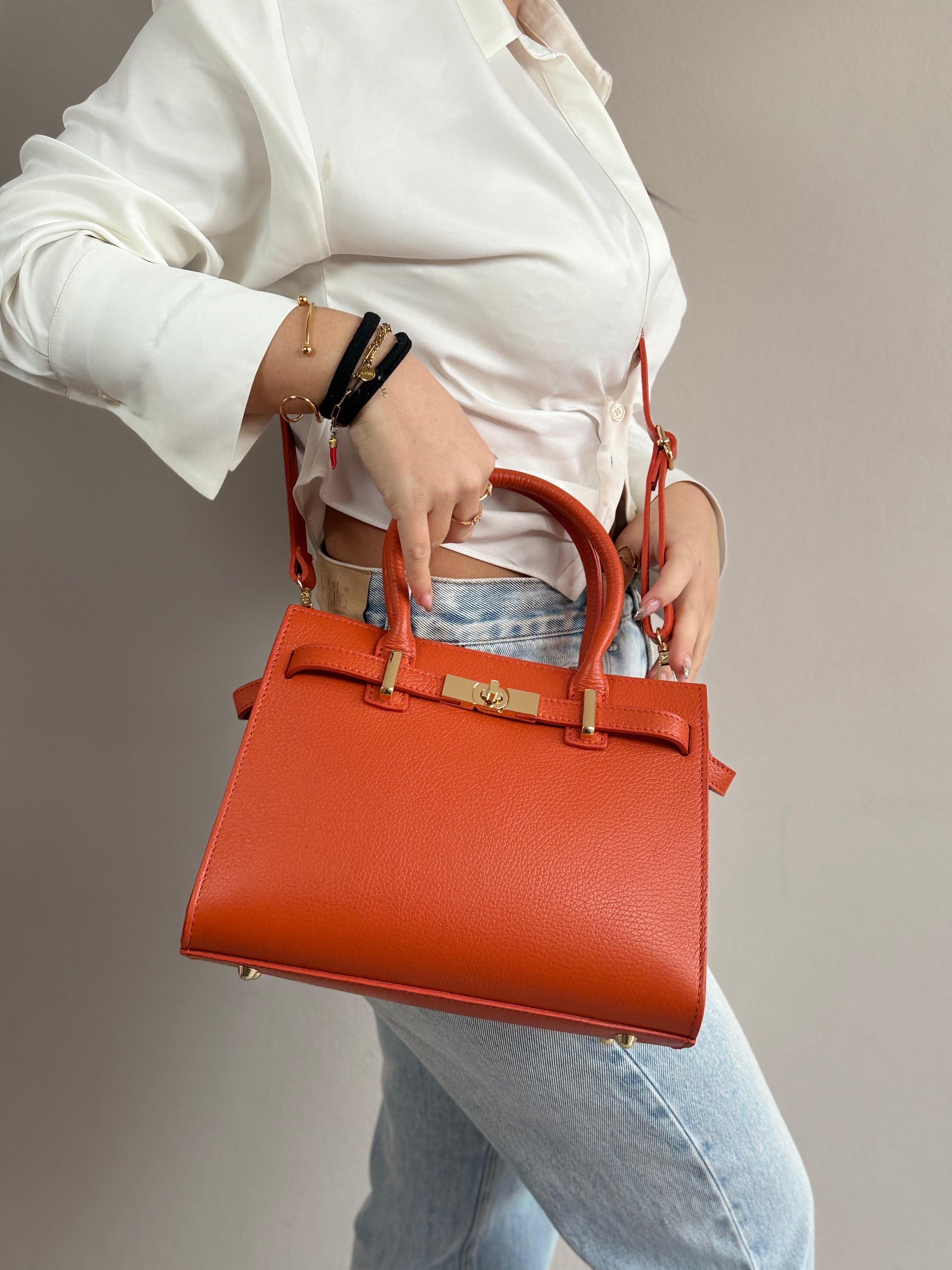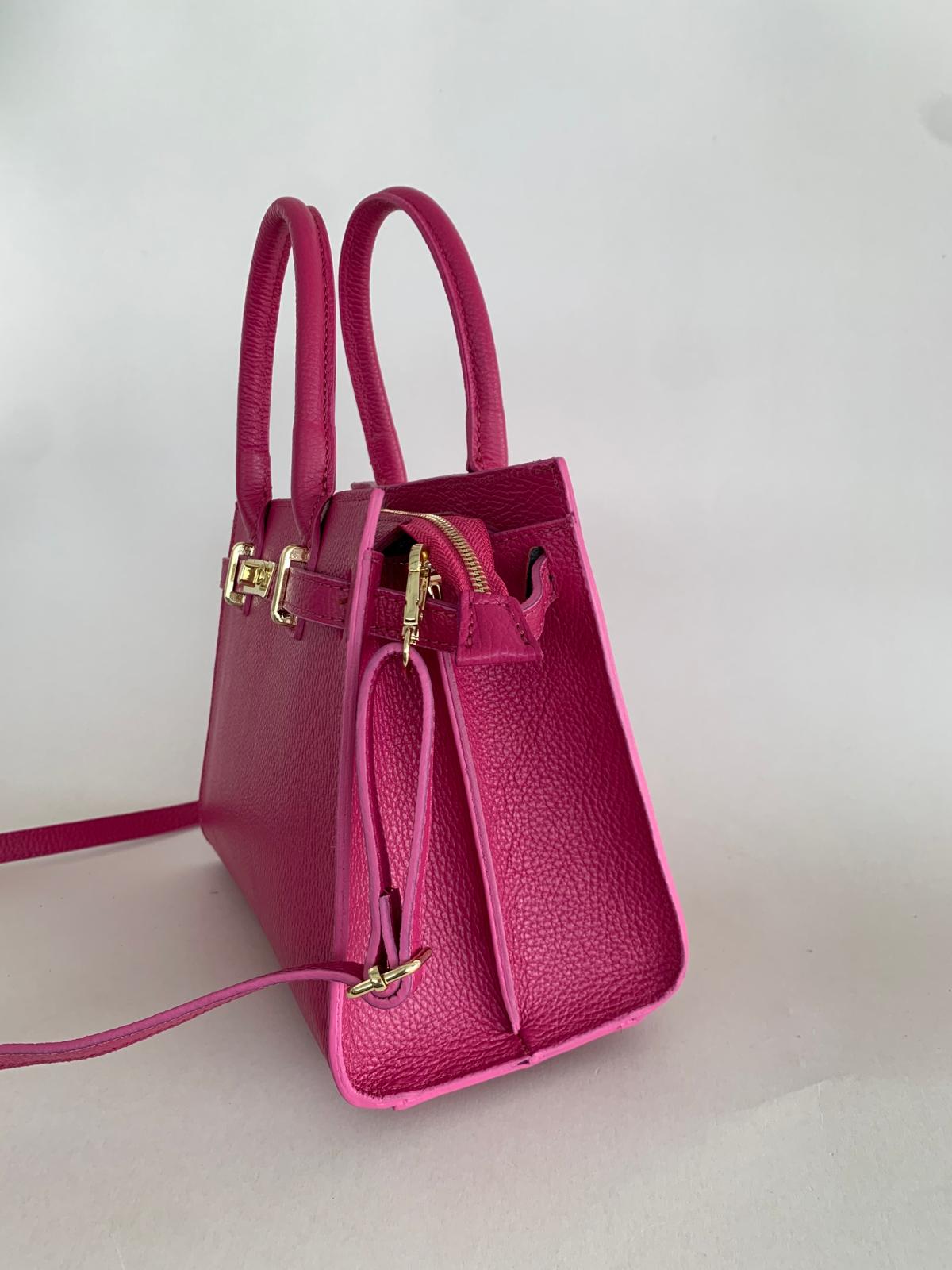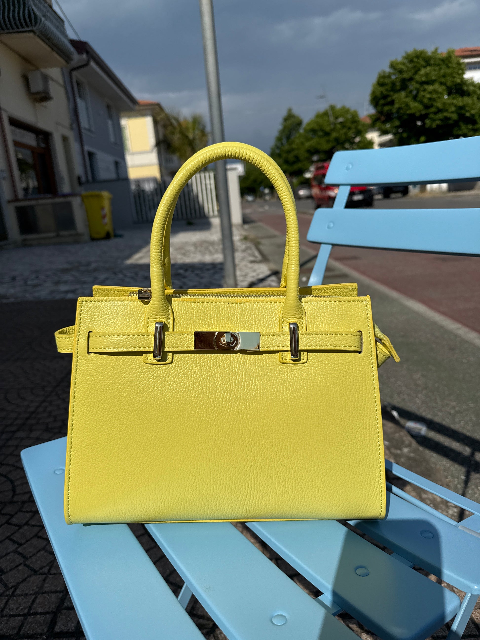 Borsa a mano realizzata in pelle di vitello botalato , chiusura a cerniera, interno foderato in tessuto, tasca interna con cerniera, interno diviso in due scomparti , metallerie dorate, tracolla in pelle removibile e regolabile