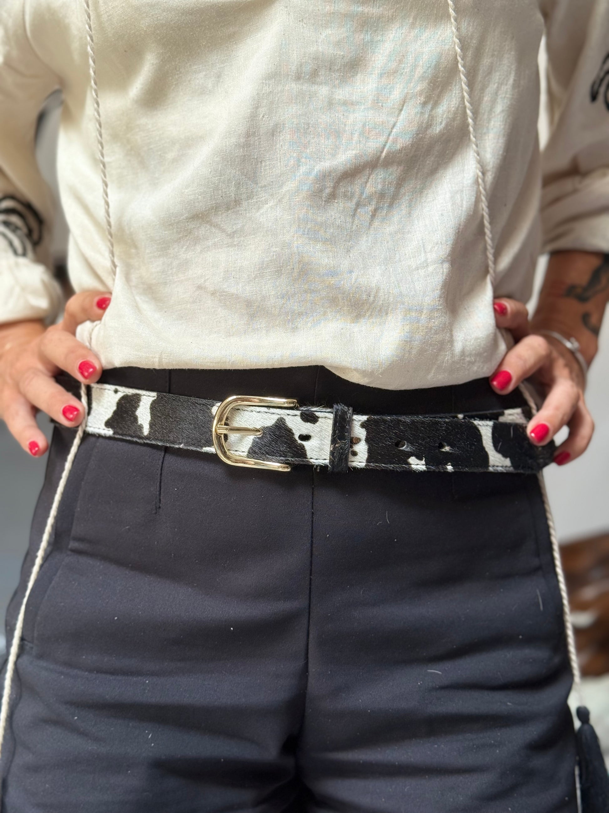 Cintura in cavallino con fibbia dorata.