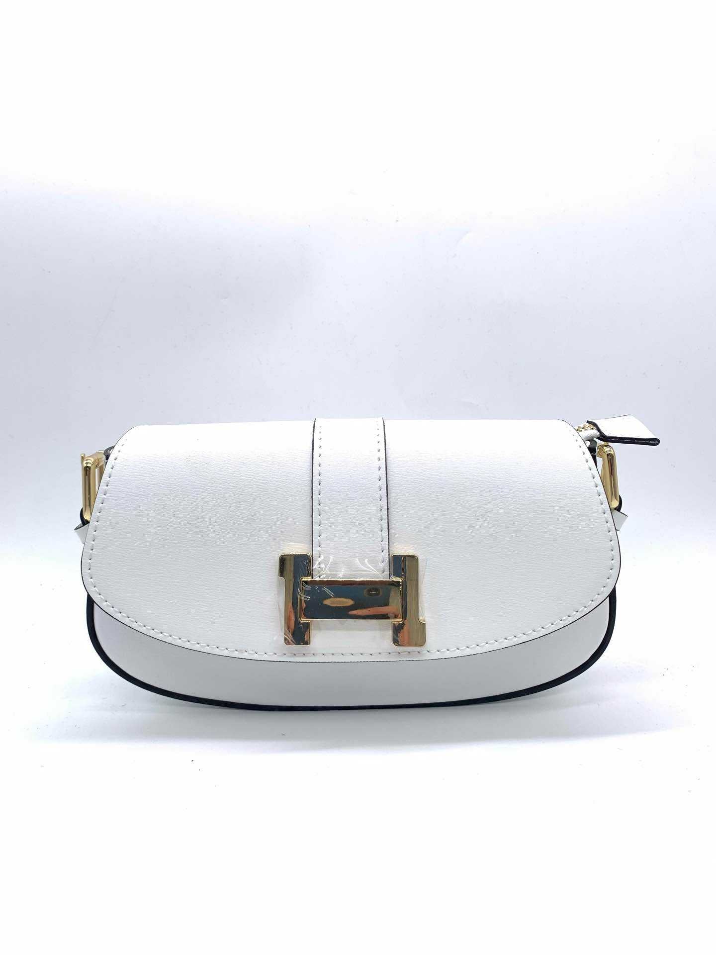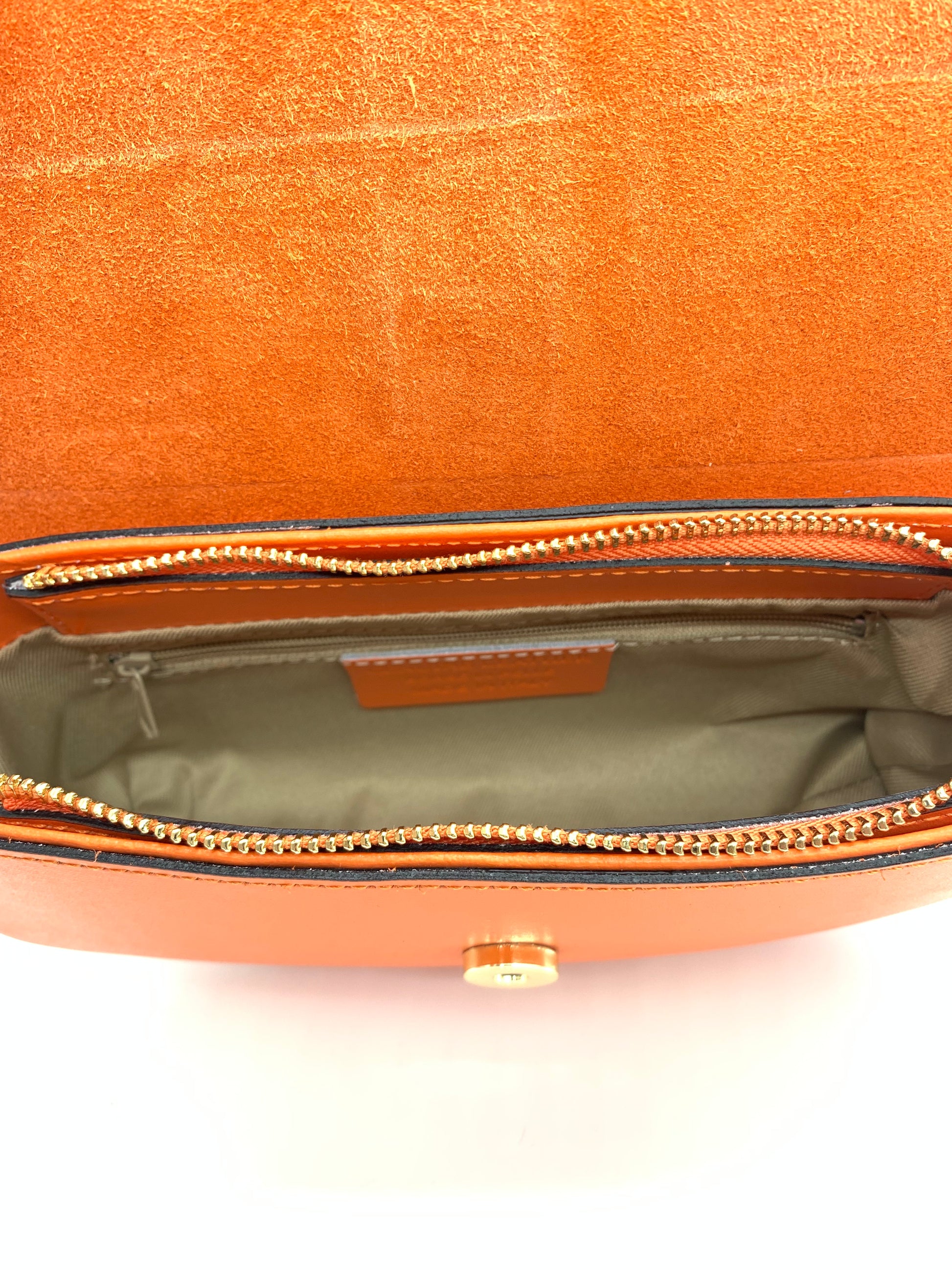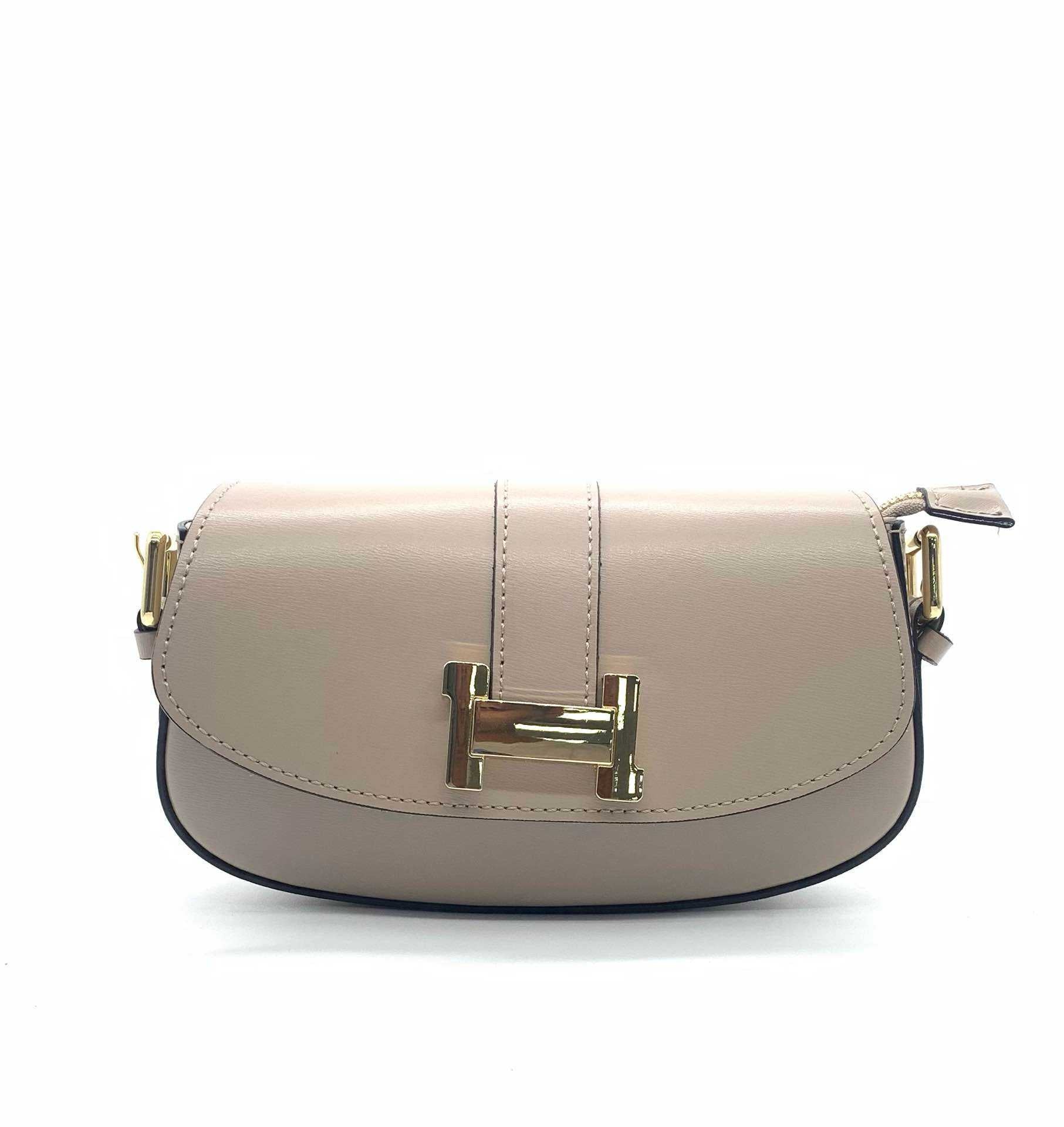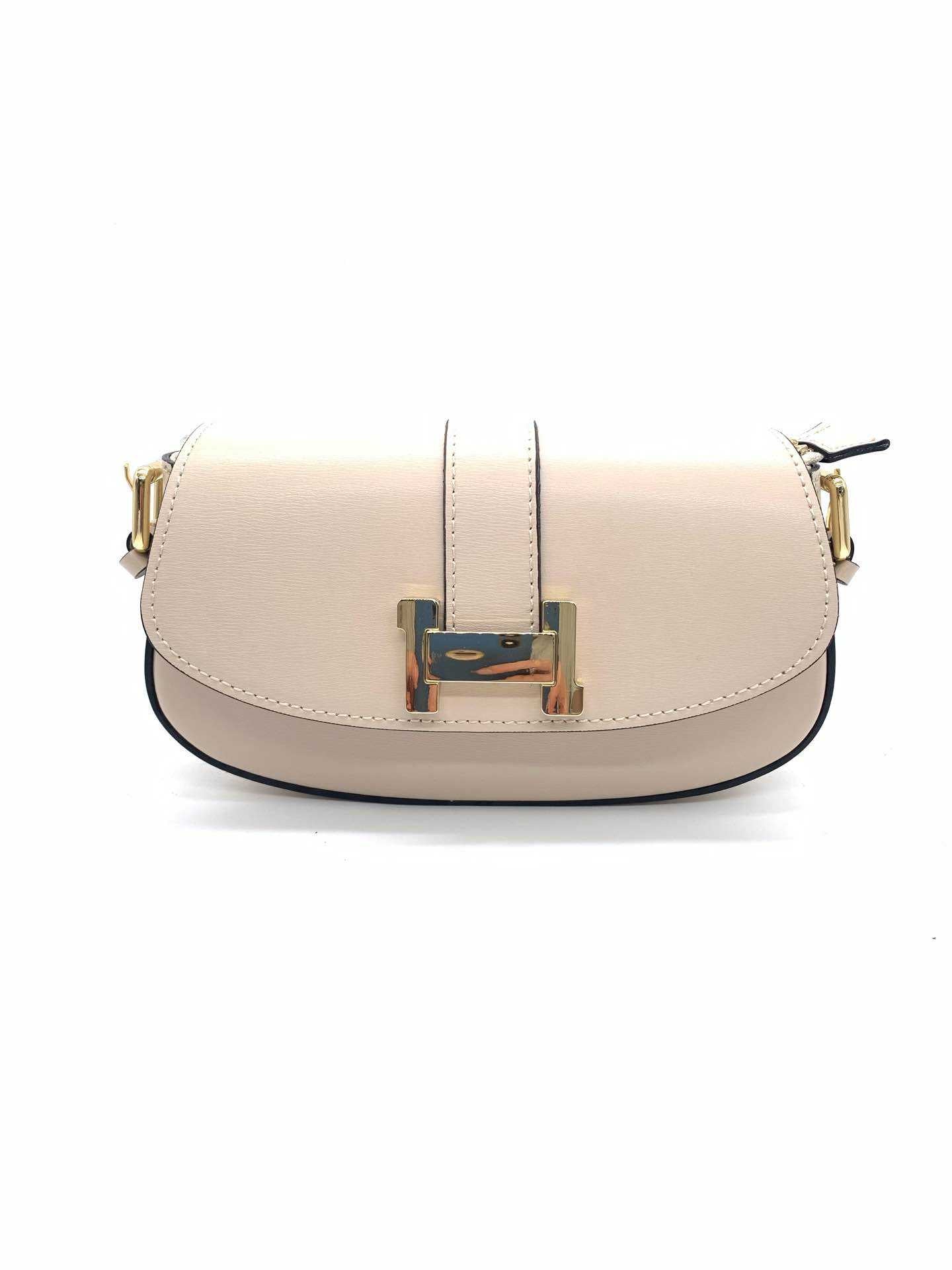 piccola borsa a tracolla realizzata in pelle saffiano, chiusura con pulsante a calamita e cerniera, interno foderato in cotone , tasca interna con cerniera