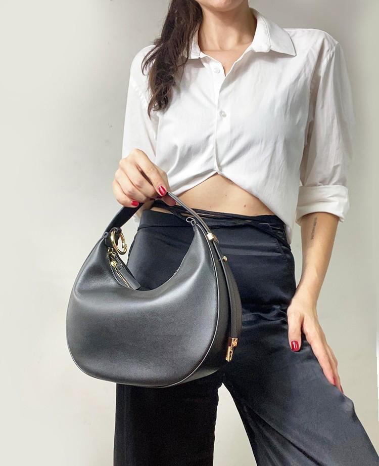 Borsa realizzata in vitello liscio, la borsa può essere portata a mano a spalla o a tracolla , maniglia regolabile , chiusura a cerniera, interno foderato in canvas, due tasche interne una con cerniera e una senza , chiusura zip , tracolla removibile e regolabile