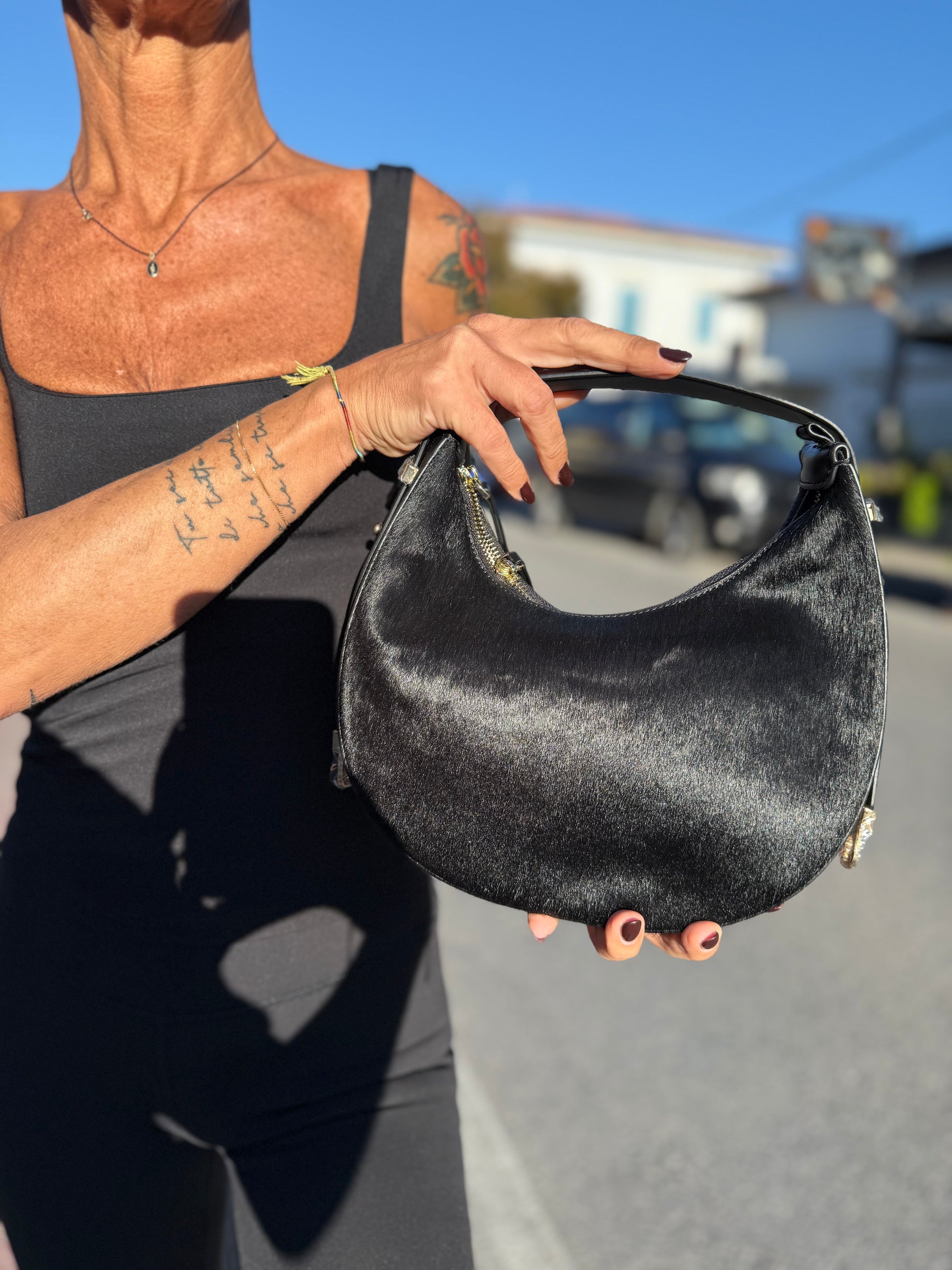 Borsa a mano in vero cavallino, la borsa può essere portata a mano a spalla o a tracolla , maniglia regolabile , chiusura a cerniera, interno foderato in canvas, due tasche interne una con cerniera e una senza , chiusura zip , tracolla removibile e regolabile