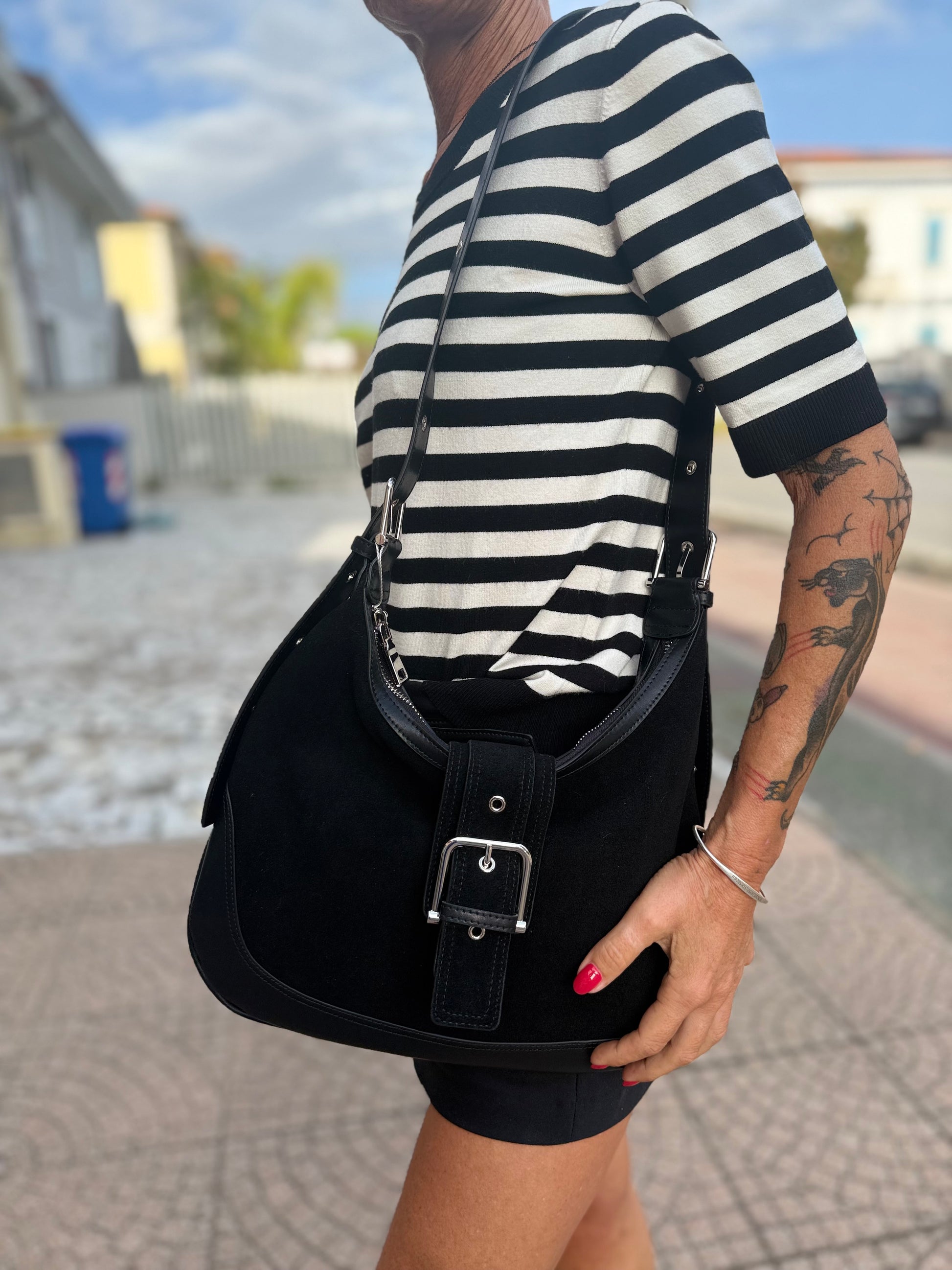 tracolla regolabile da sotto spalla a cross body.