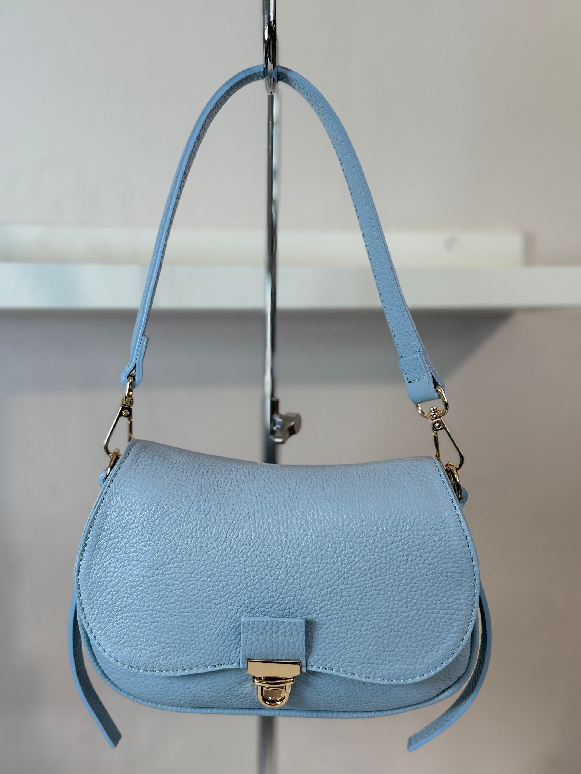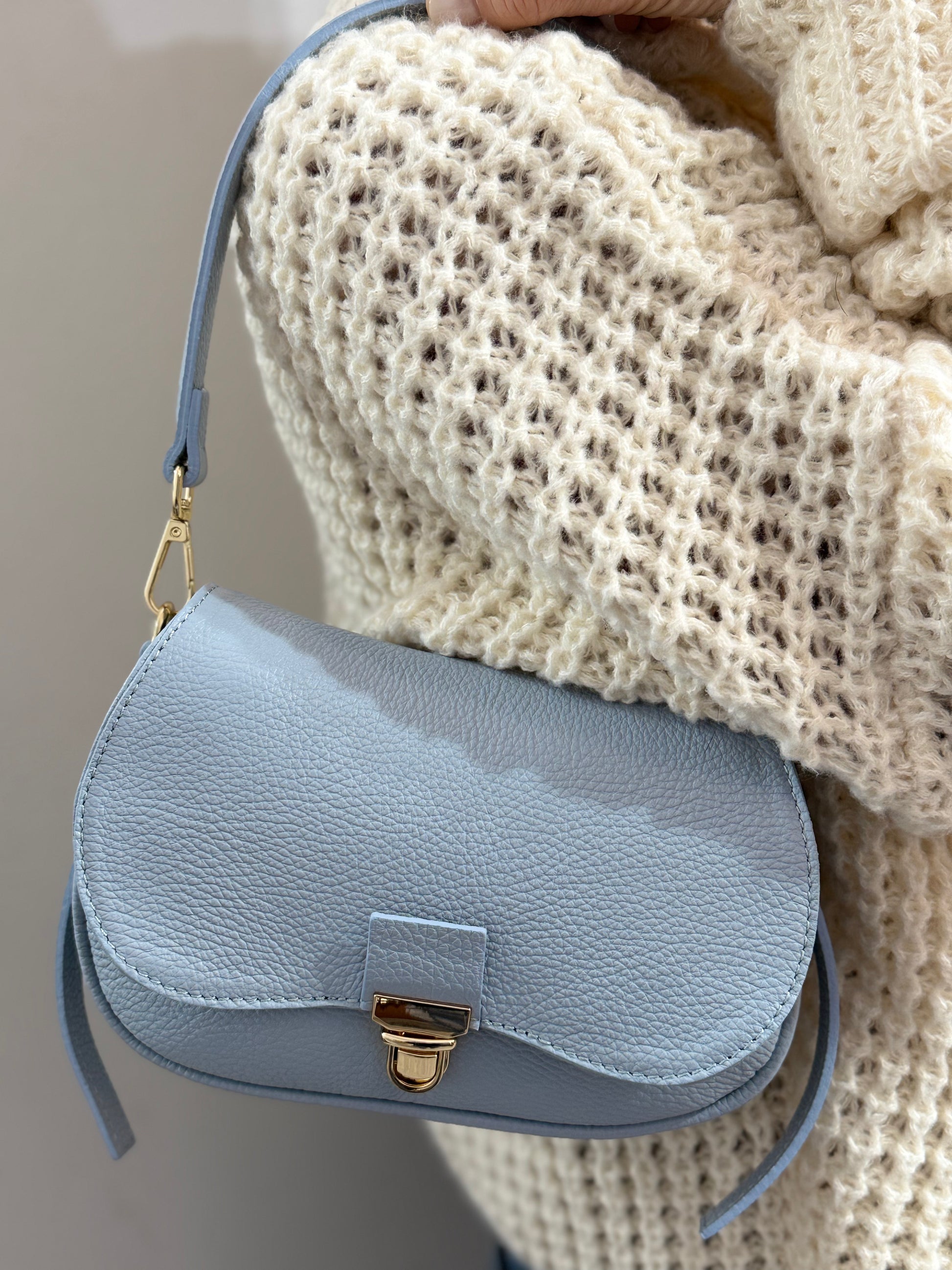 Mini bag a spalla e tracolla, realizzata in morbida pelle di vitello botalato