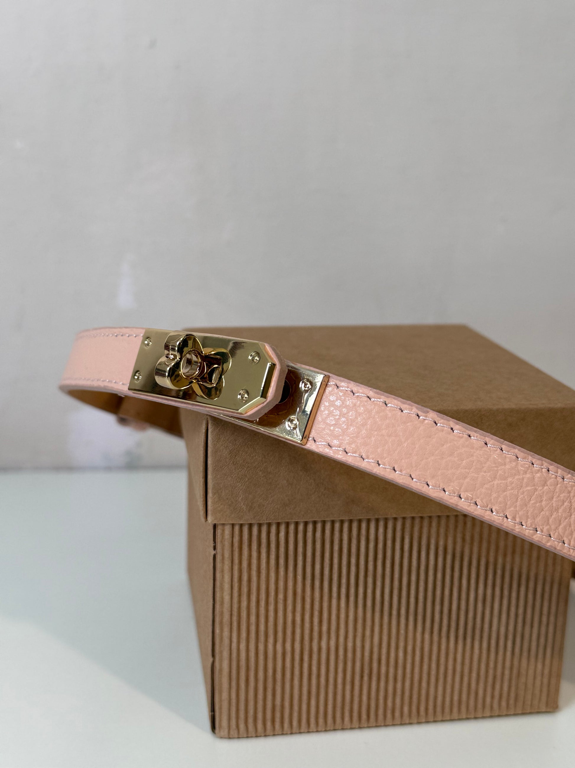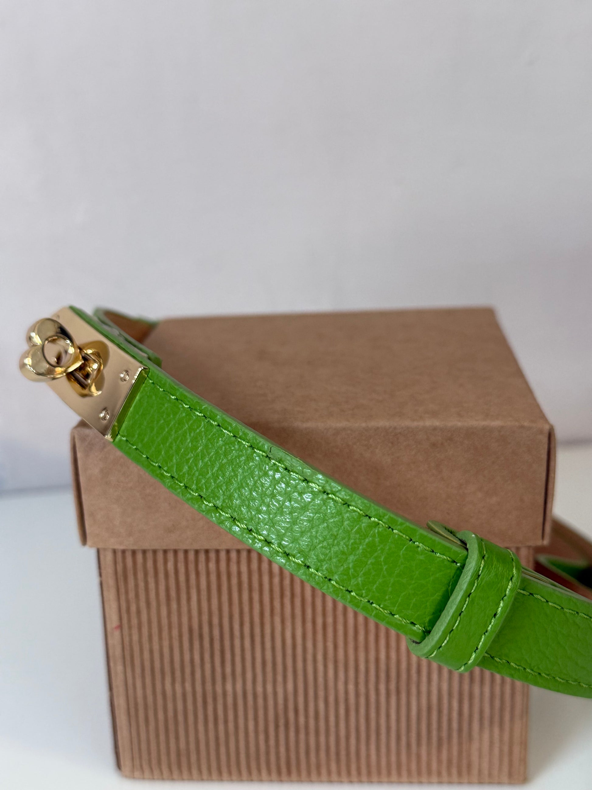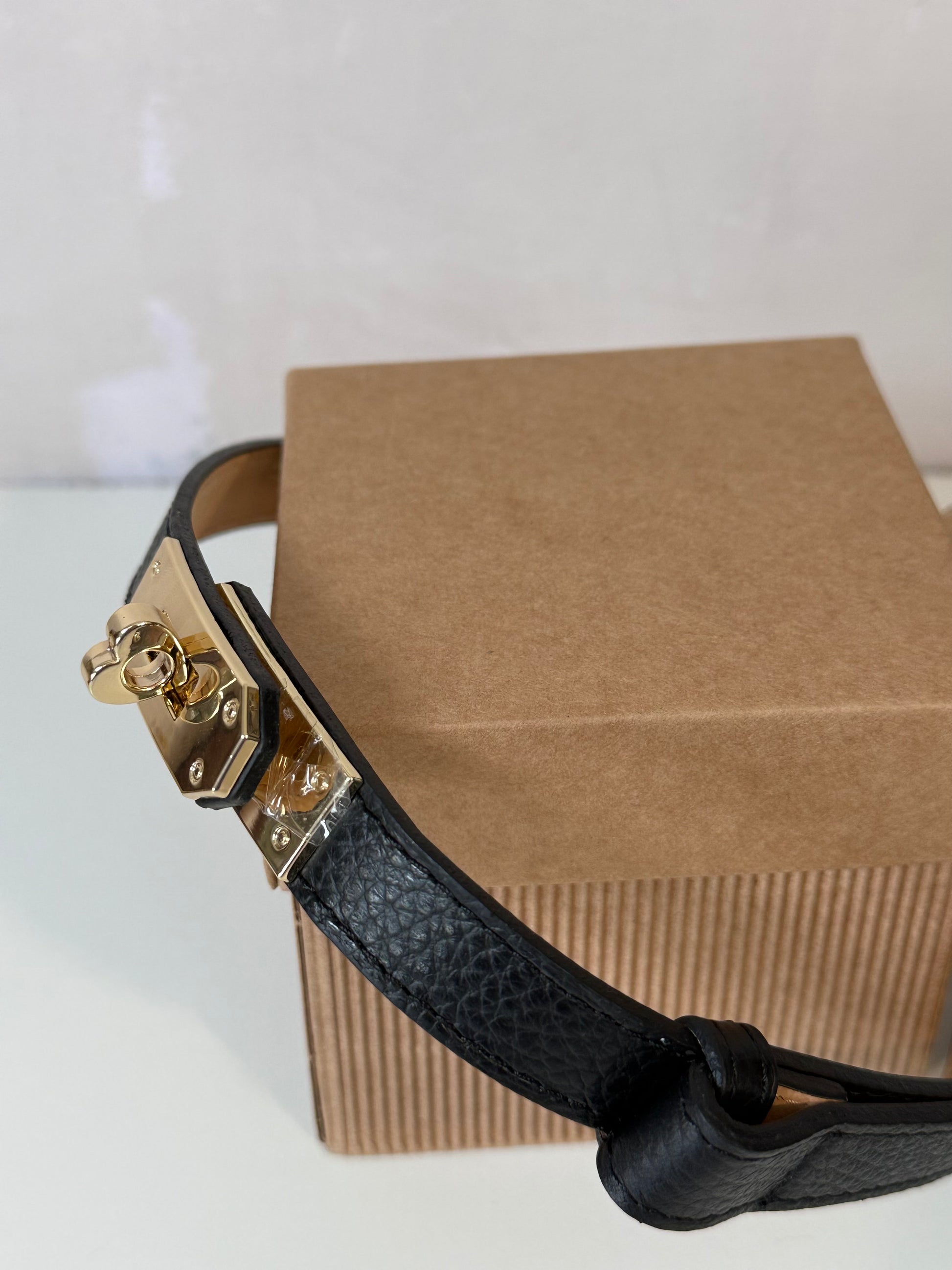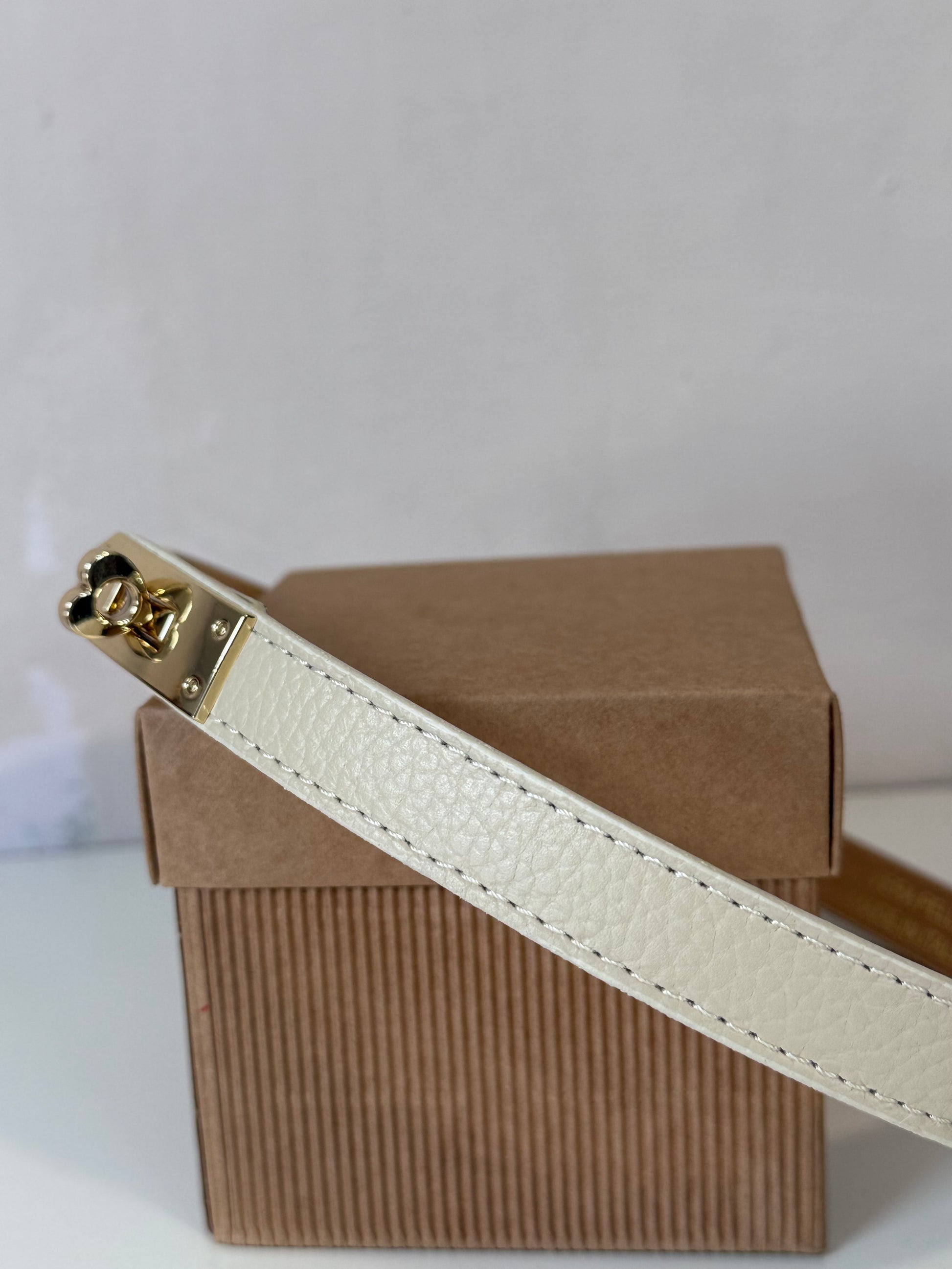 Cintura in pelle di vitello botalato con chiusura in metallo dorato, regolabile fino a 90cm