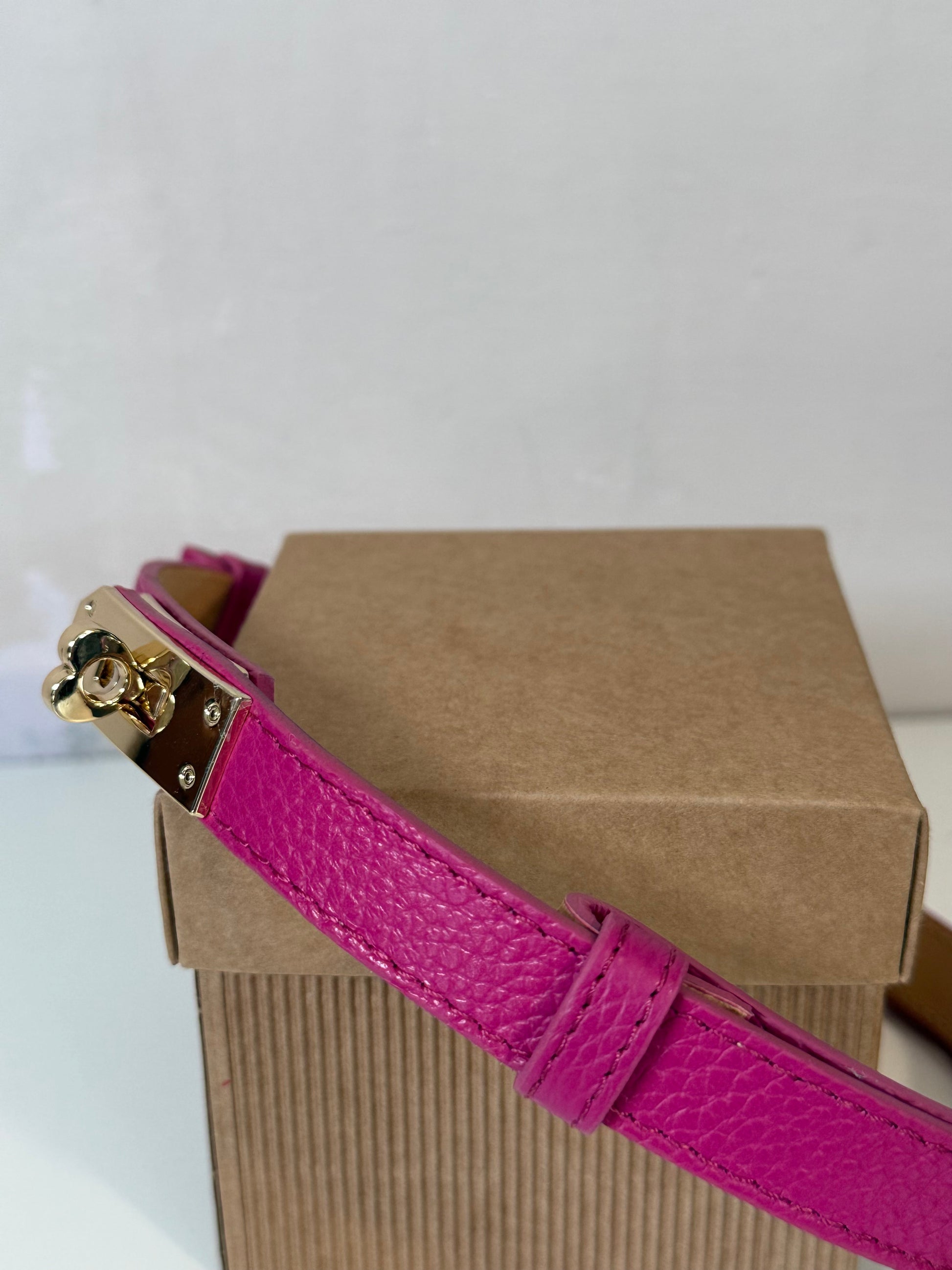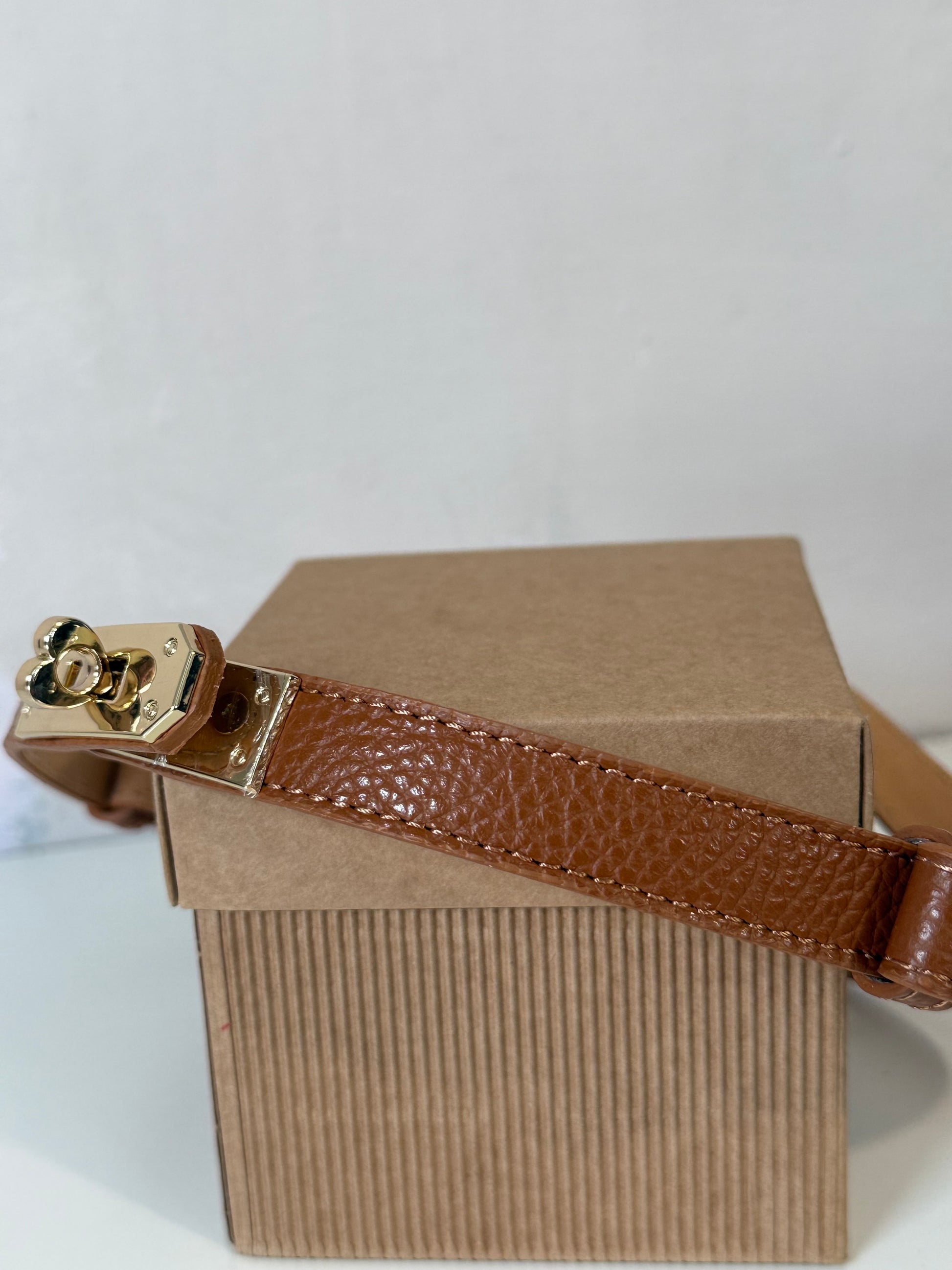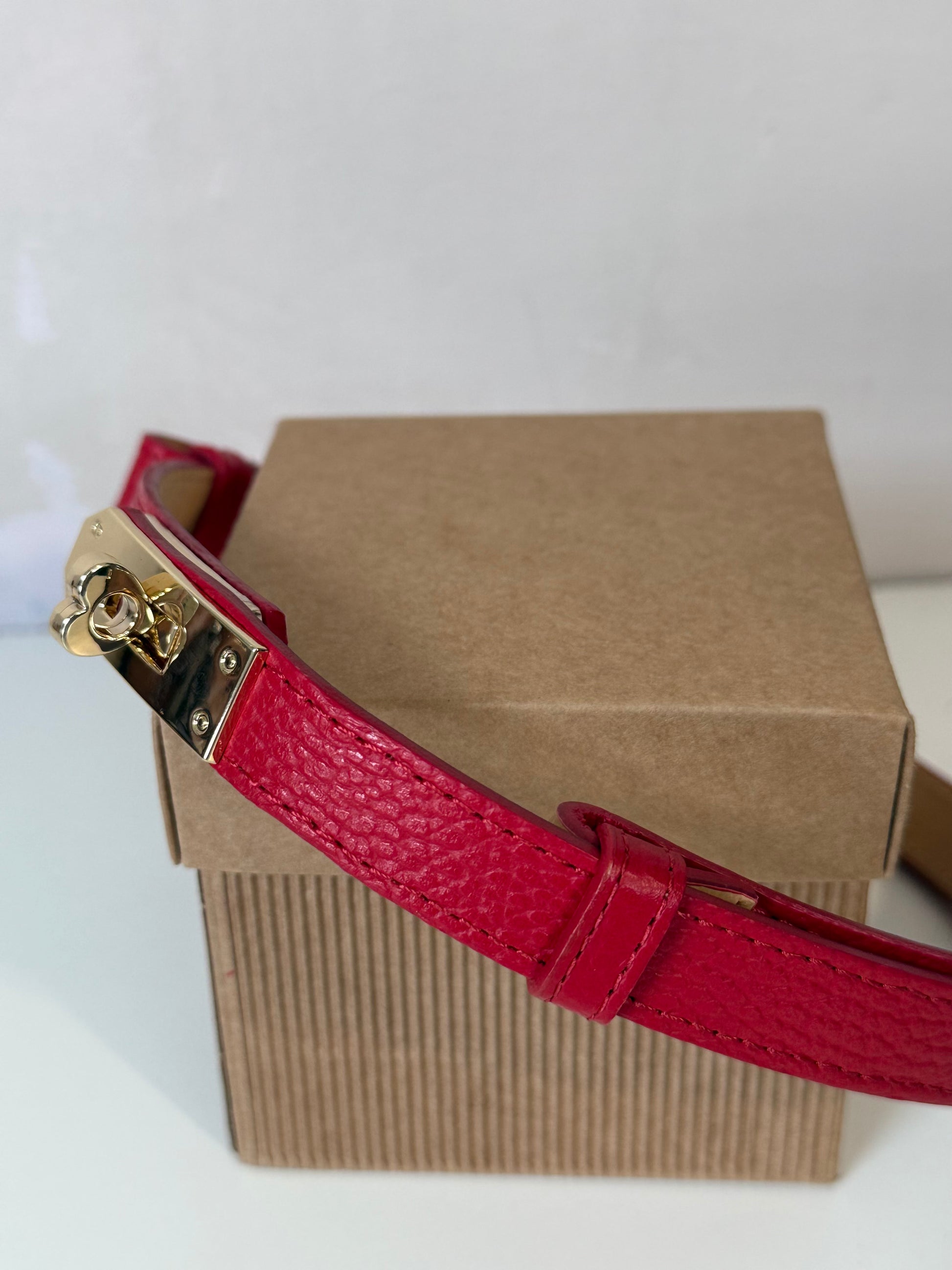 Cintura in pelle di vitello botalato con chiusura in metallo dorato, regolabile fino a 90cm
