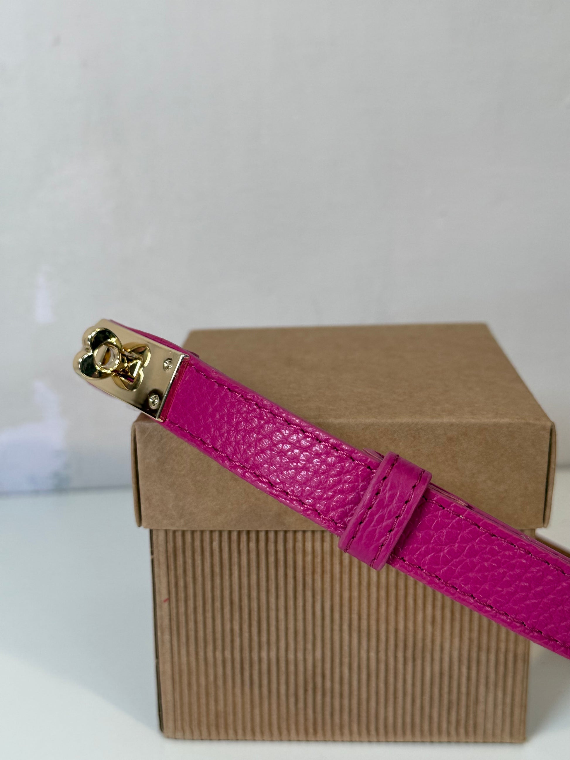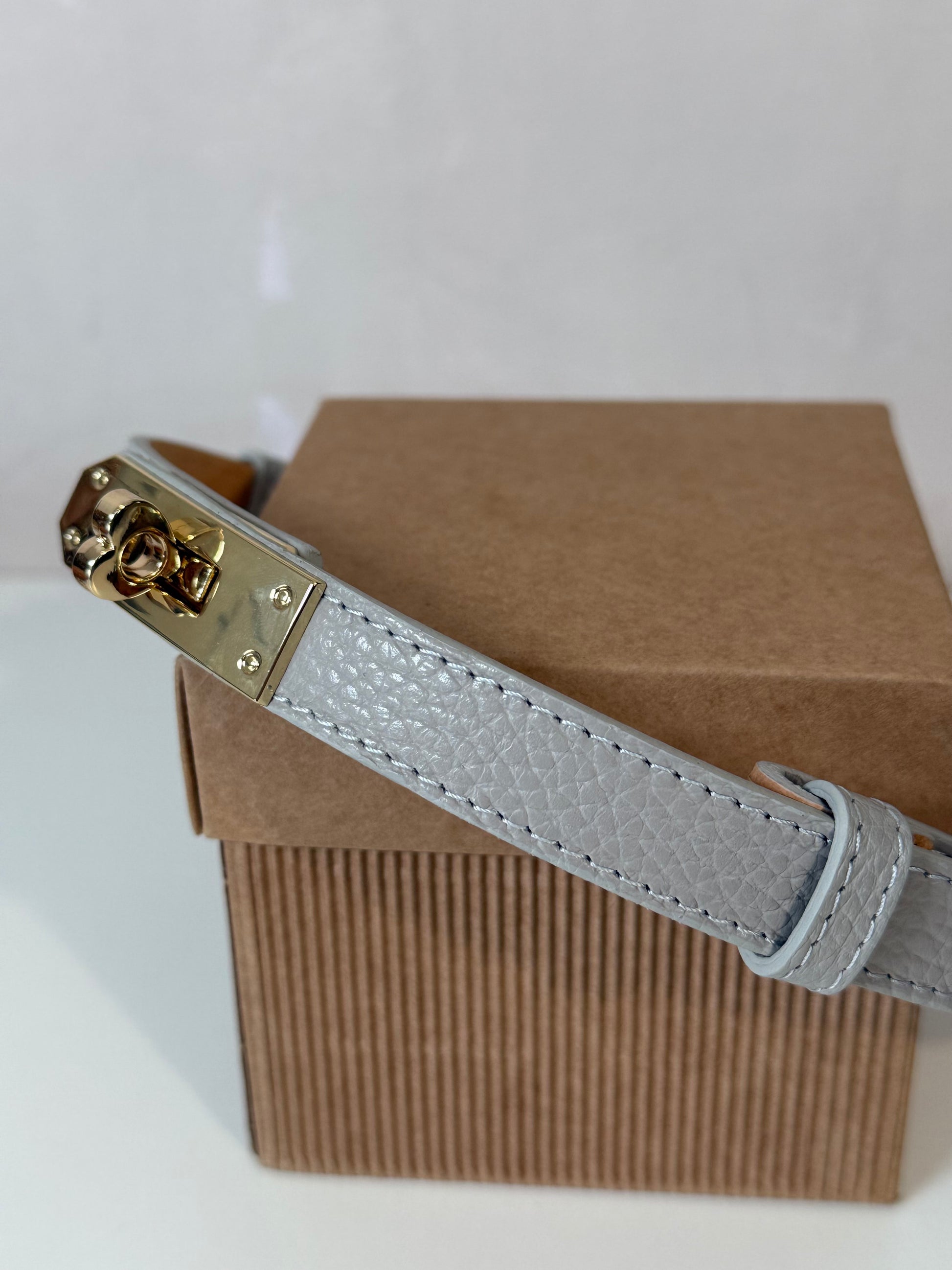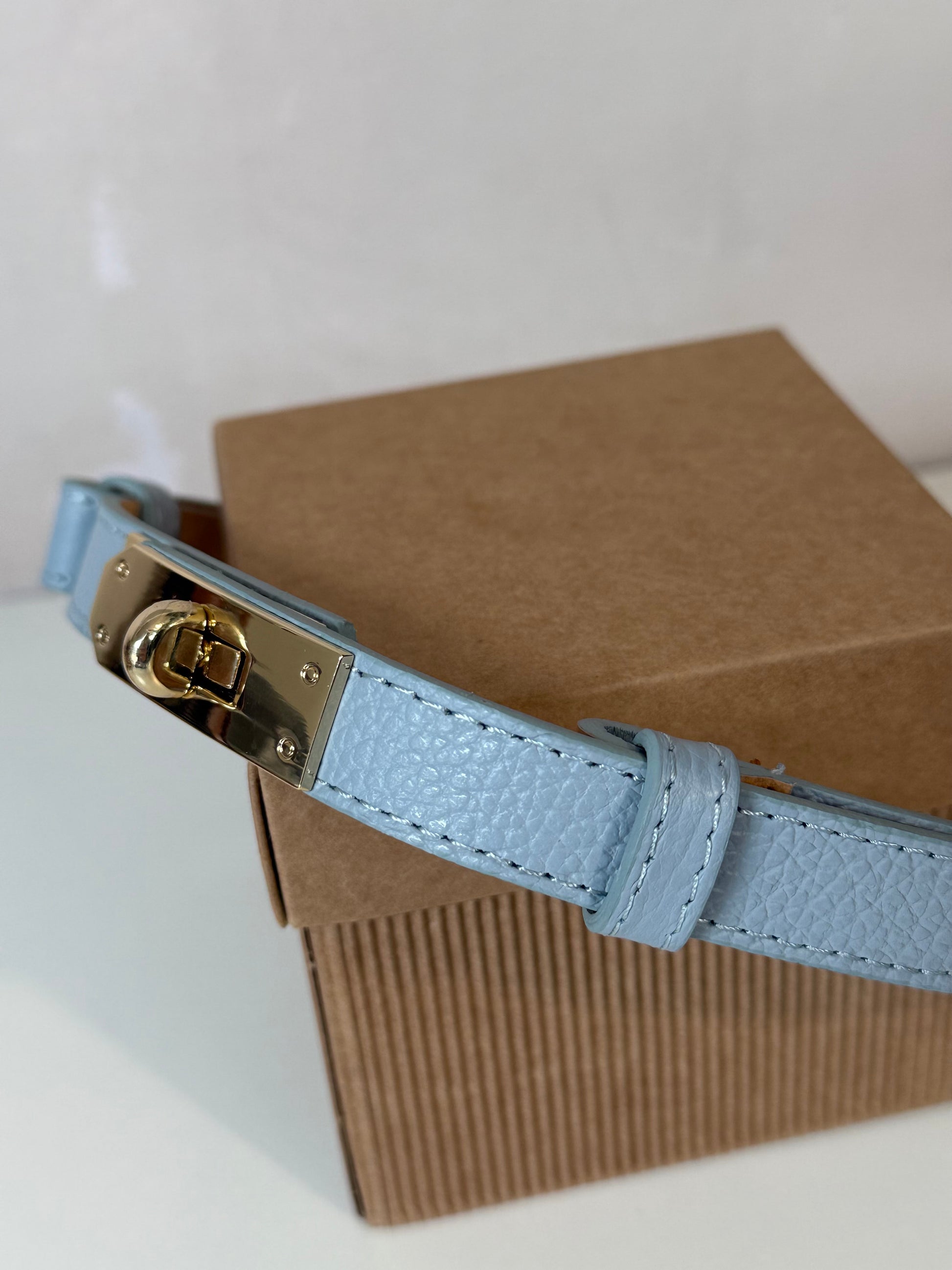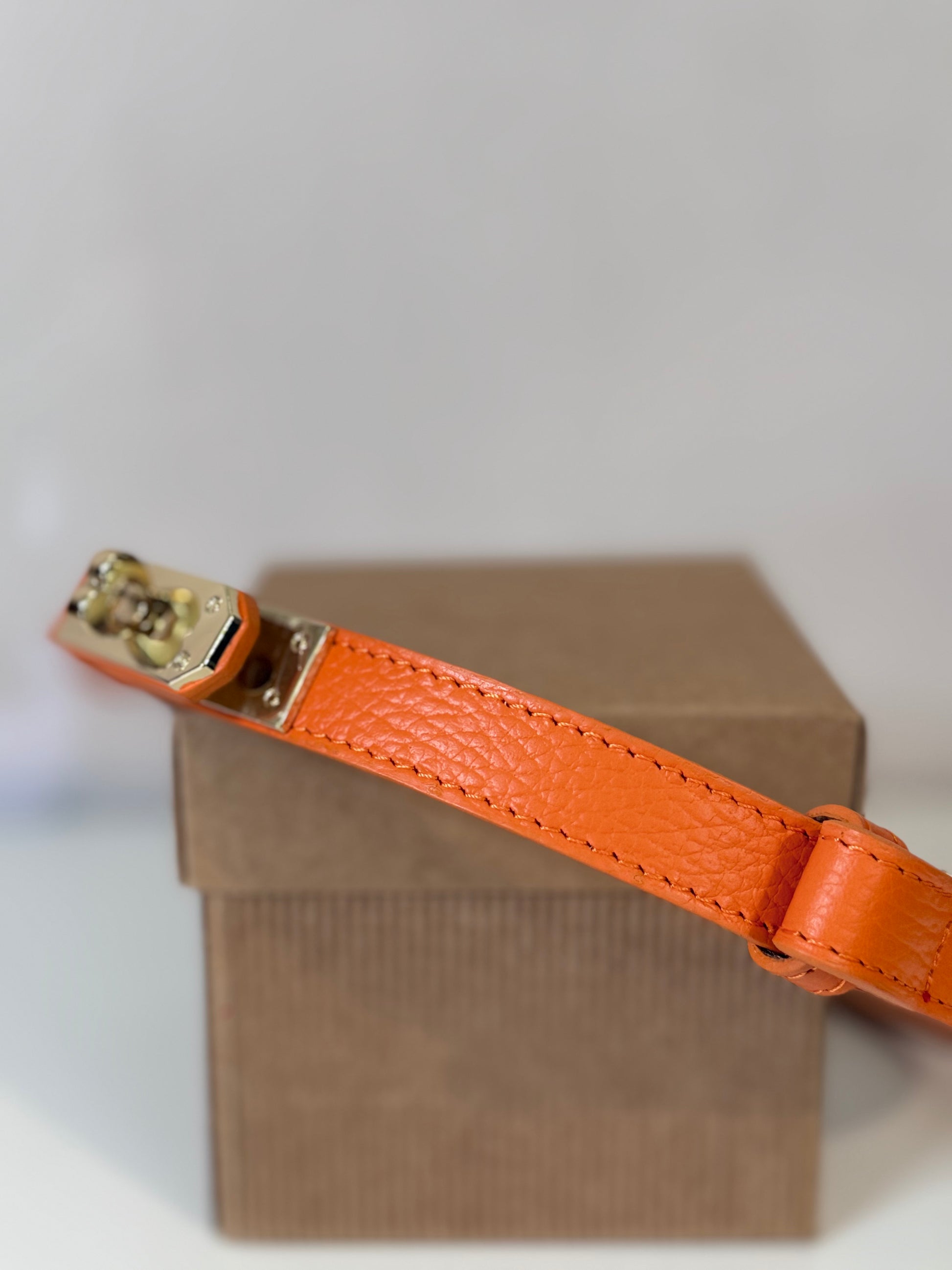 Cintura in pelle di vitello botalato con chiusura in metallo dorato, regolabile fino a 90cm