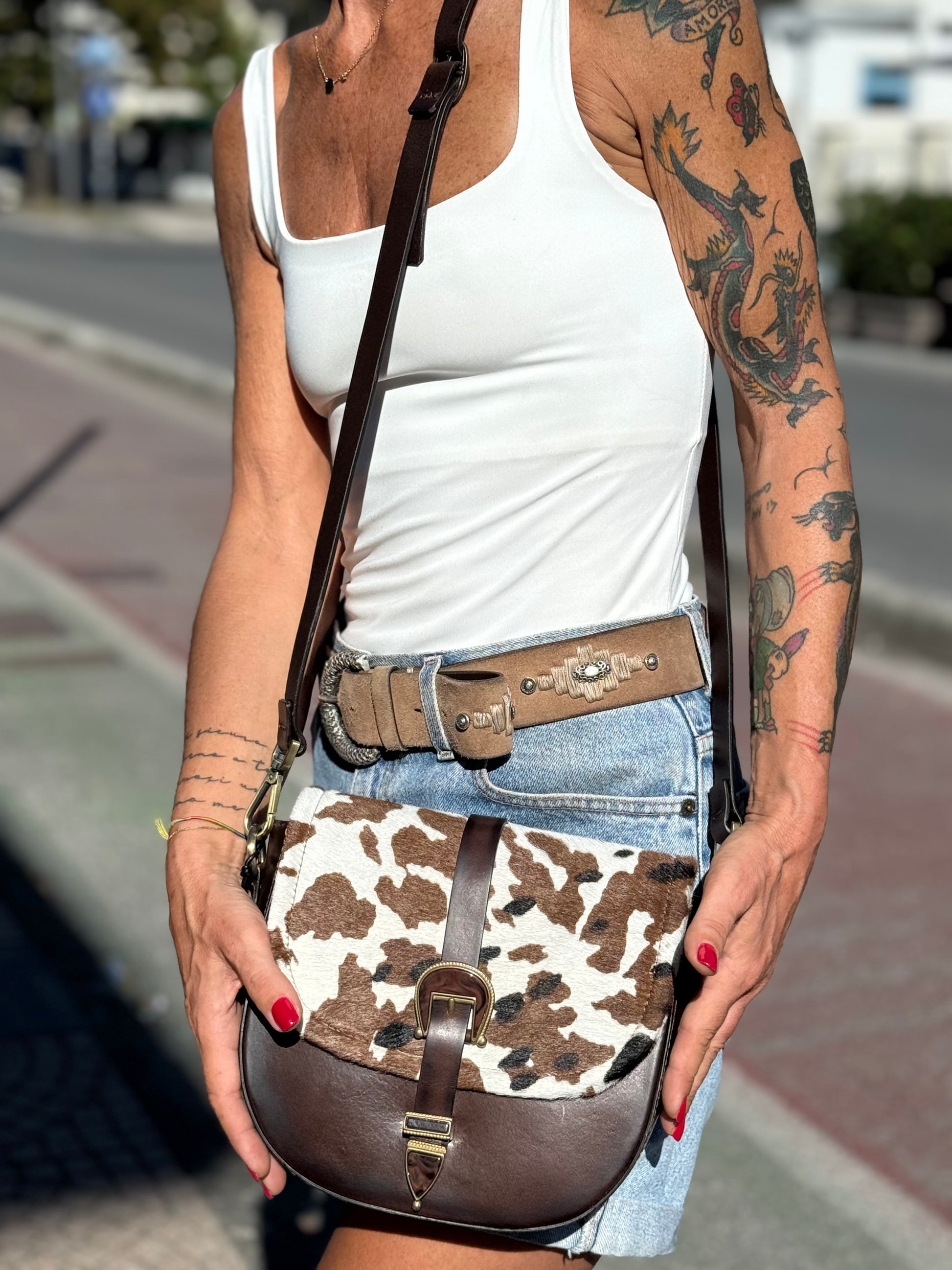 Borsa a tracolla realizzata in pelle di vitello pesante, spazzolata. Con tracolla removibile e regolabile.