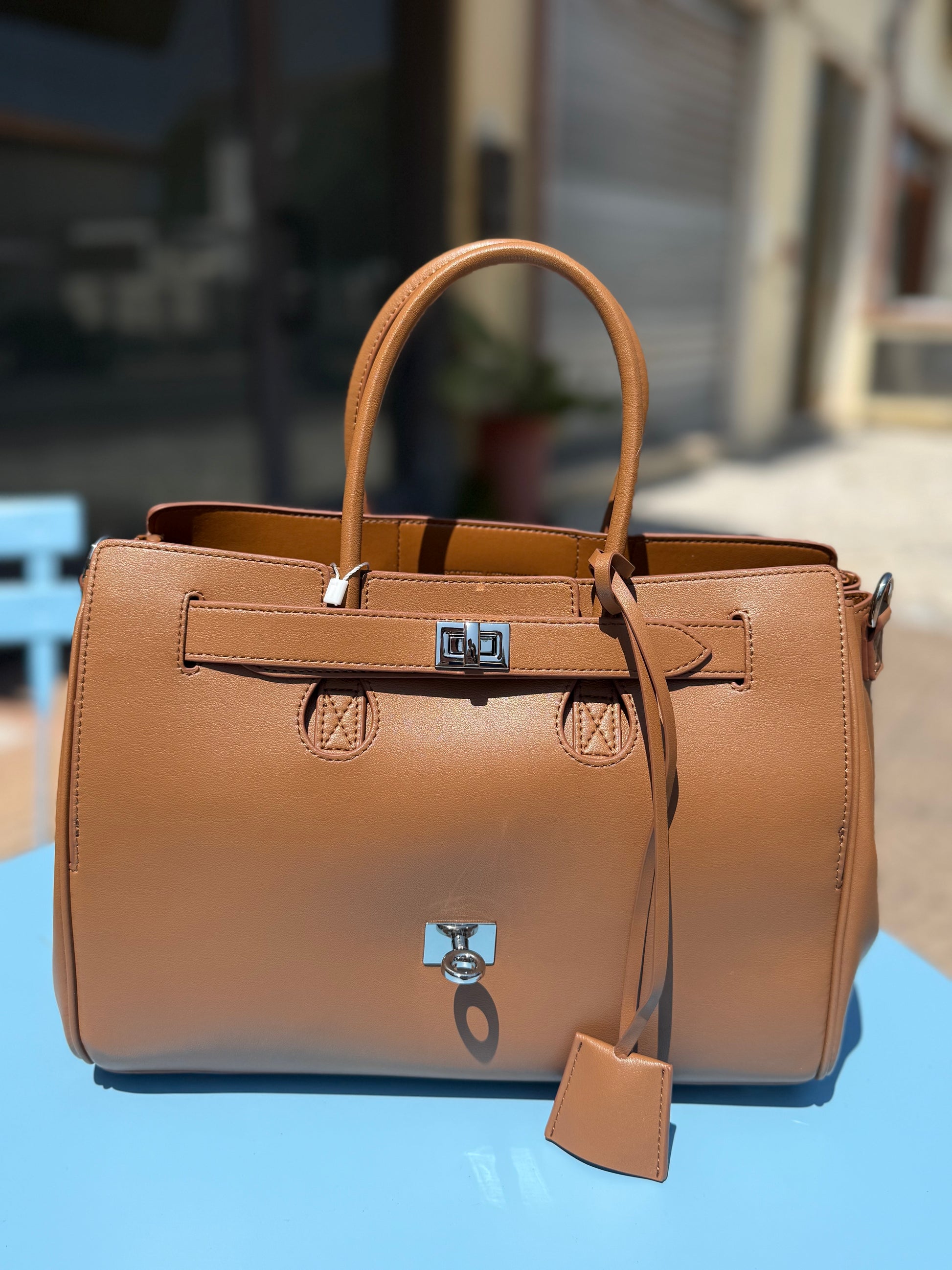 Borsa a mano in pelle di vitello liscio con tracolla removibile e regolabile.