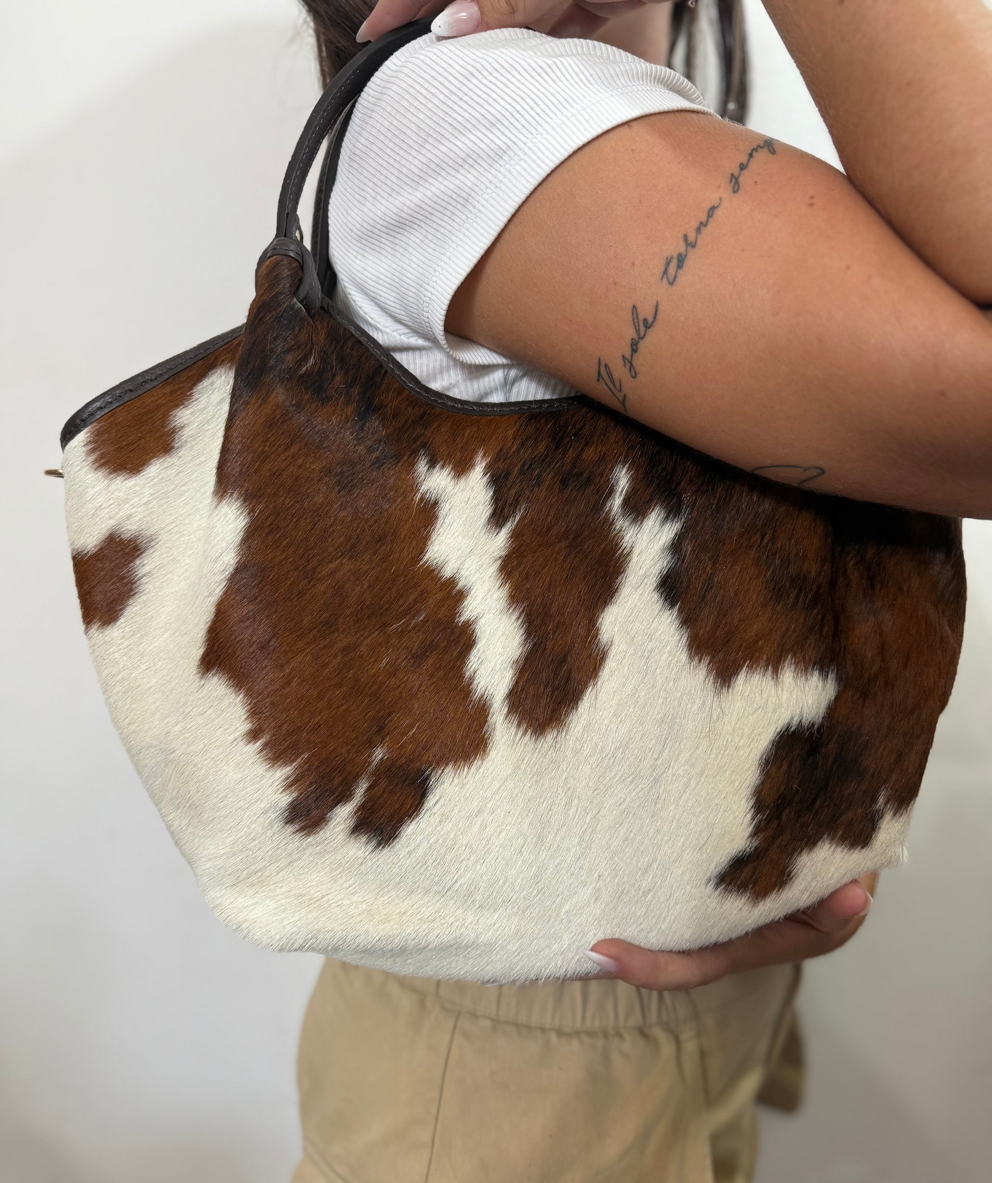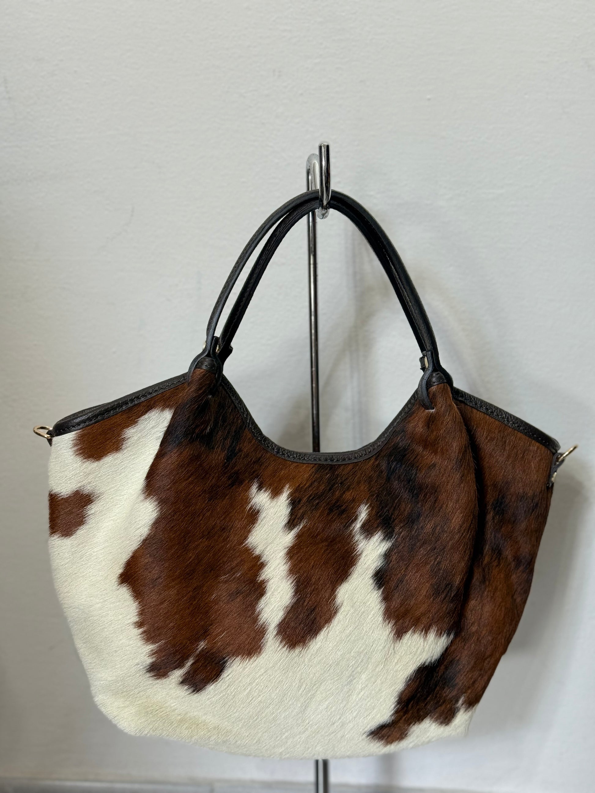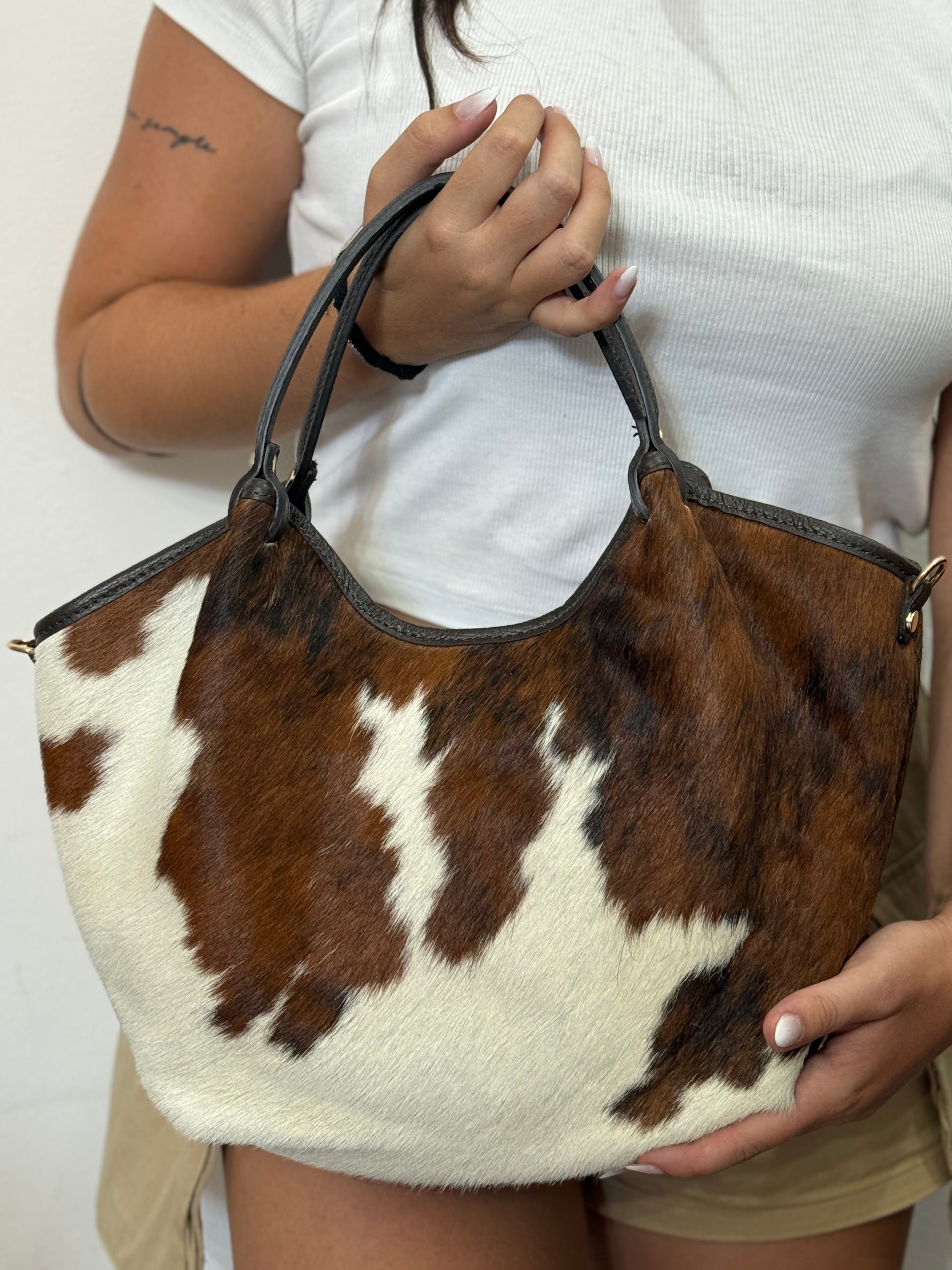 Borsa a spalla realizzata in vero cavallino con rifiniture in pelle di vitello botalato.