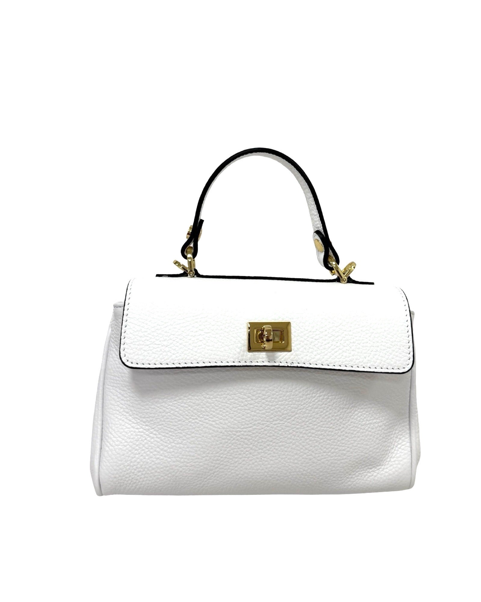Mini bag in pelle di vitello botalato , maniglia a mano in pelle , tracolla removibile regolabile , doppia chiusura a scatto , tasca con cerniera sul retro, fodera interna in canvas